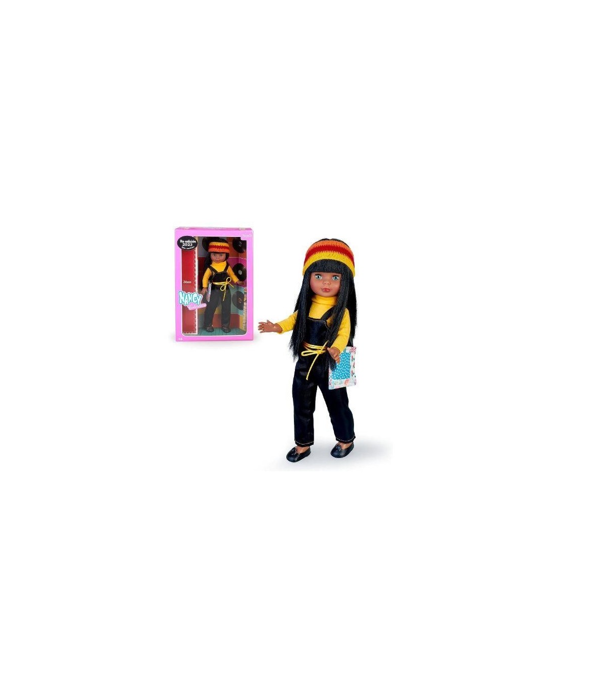 La nueva reedición del 2023 de la Nancy Colección modelo Disco 1980 es sin duda una de las muñecas más esperadas y especiales del momento. Con su estilo retro y su atrevido conjunto, esta muñeca es el complemento perfecto para cualquier colección de muñecas. El conjunto de esta Nancy es impresionante, ya que presenta un peto negro combinado con un jersey amarillo que resalta su estilo desenfadado y juvenil. Además, su melena larga y negra es perfectamente peinada y cuidada para darle un aspecto único y auténtico. Para complementar su look, esta muñeca incluye un gorro de lana y un bolso de tela, que le dan un toque adicional de estilo y personalidad. La Nancy Colección modelo Disco 1980 es una reedición muy esperada que no puede faltar en ninguna colección. Su calidad y atención al detalle son evidentes en cada aspecto de la muñeca, desde su ropa hasta su cabello. Esta muñeca es una pieza única que seguramente será el objeto de deseo de muchos coleccionistas y amantes de las muñecas. En conclusión, si eres un coleccionista apasionado por las muñecas, la Nancy Colección modelo Disco 1980 es una muñeca imprescindible que debes tener en tu colección. Su estilo retro y su diseño detallado la hacen una muñeca especial y única que no te decepcionará. No te pierdas la oportunidad de agregar esta increíble muñeca a tu colección.