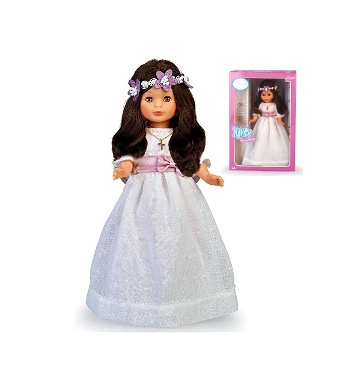 Muñeca Nancy Morena Comunión. Con vestido blanco y cuidando hasta el más mínimo detalle, al igual que una niña en el día de su Primera Comunión. La Muñeca Nancy Morena Comunión es una creación única y especial que destaca por su impresionante nivel de detalle y cuidado en su diseño. Con una altura de 43 cm, esta muñeca está vestida con un elegante vestido blanco, que ha sido confeccionado con los mejores materiales para garantizar una sensación suave y agradable al tacto. Desde el encaje en la falda hasta los detalles bordados en el corpiño, cada aspecto de esta muñeca ha sido cuidado hasta el más mínimo detalle para imitar el look de una niña en su día de Primera Comunión. La Muñeca Nancy Morena Comunión presenta un cabello oscuro y una tez morena, lo que le da un aspecto más auténtico y realista. Además, su tamaño y peso la hacen perfecta para que los niños y niñas puedan sostenerla cómodamente mientras juegan. Esta muñeca es una opción ideal para aquellos que quieran recrear el día de su Primera Comunión o para aquellos que quieran coleccionar muñecas únicas y especiales. En resumen, la Muñeca Nancy Morena Comunión es una verdadera obra de arte, que seguramente se convertirá en el objeto de deseo de muchos.