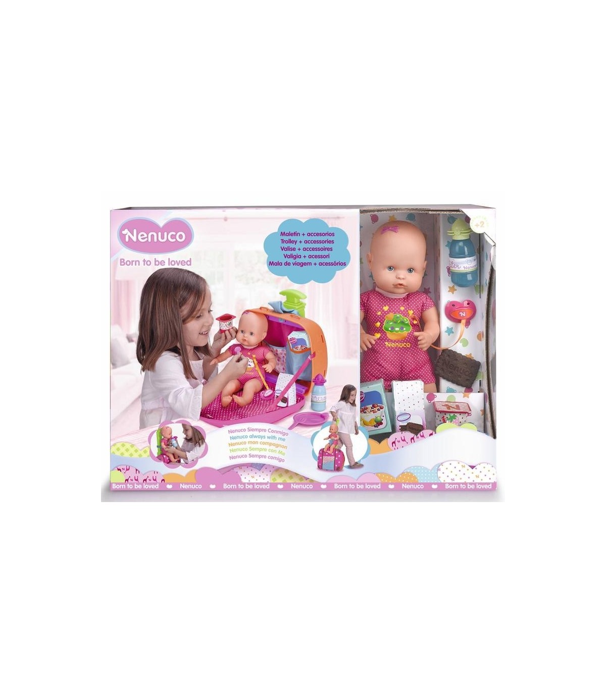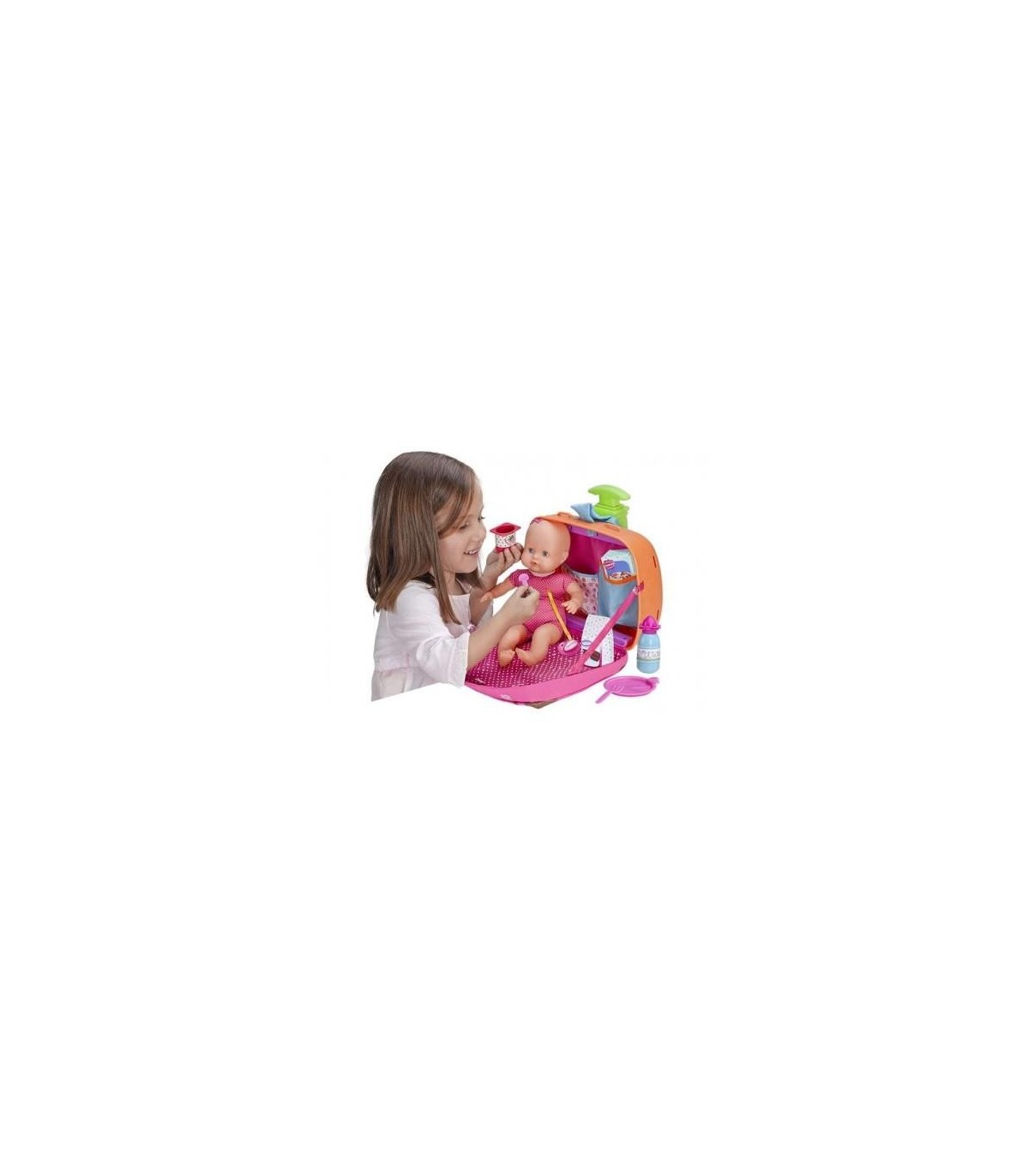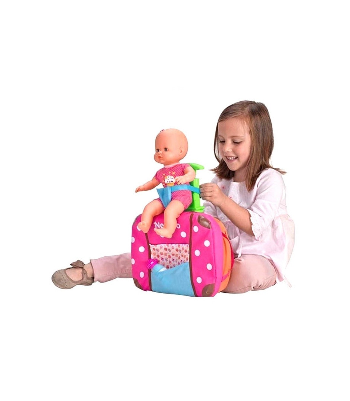 muñeco nenuco con un completo maletin con asiento de transporte y muchos accesorios. cuida a tu muñeco donde quieras