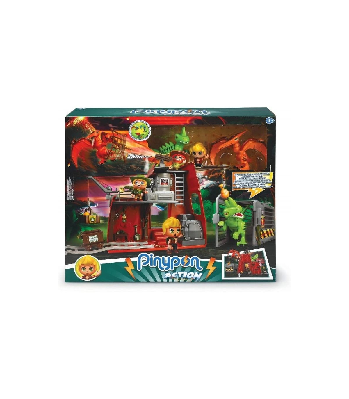 El juguete PINYPON Action Wild Dinos Atacan Al Cazador es una excelente opción para dar un fabuloso regalo a tus niños y niñas. Este set recrea el escenario de un campamento científico en el que dos dinosaurios intentan recuperar los huevos que les han quitado del nido. Por su parte, los PINYPON son unos científicos que quieren atrapar a los dinosaurios con diferentes trampas. Para ello, usan la jaula con polea. Incluso tienen carriles para transportar los huevos hasta el laboratorio.