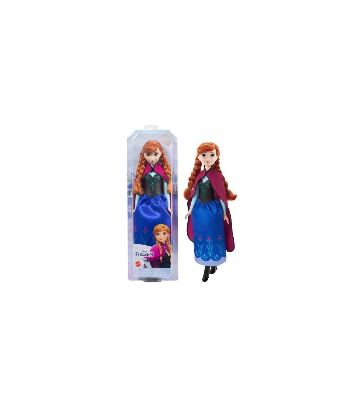 Esta muñeca de Anna está inspirada en la princesa más querida de Frozen de Disney. Esta muñeca de moda articulada de Anna lleva su emblemático conjunto de viaje azul y morado, formado por una capa y una falda delicadas y unos zapatos, todo intercambiable. El pelo de Anna se puede cepillar y lo lleva recogido en dos trenzas, igual que en la película Es un regalo perfecto para que niños y niñas recreen sus momentos favoritos de Frozen de Disney, o para que se imaginen sus propias aventuras llenas de emoción.