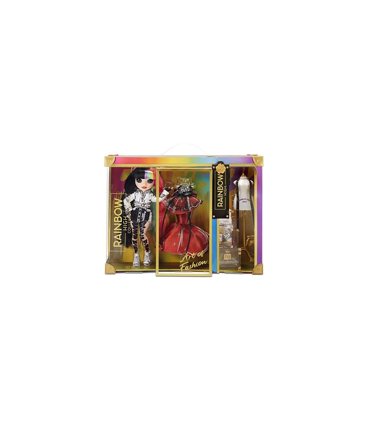 RAINBOW HIGH: Te presentamos a la muñeca coleccionable Jett Dawson; Jett viene en una caja de edición limitada con accesorios y un hermoso pelo largo; Añádela a tu colección y muéstrala en el soporte de muñecas MODA: La muñeca coleccionable Jett Dawson viene con 2 outfits premium; El primero es un vestido de día de alta costura y el segundo es un vestido rojo deslumbrante; Cada outfit tiene su propio par de zapatos adecuado INCLUYE: Muñeca de moda flexible de 28 cm, 2 vestidos, 2 pares de zapatos, 2 baúles para accesorios, mini máquina de coser, maniquí enrollado, bufanda con cinta métrica, peine, 2 perchas y soporte para muñecas COLECCIÓN FAVORITA: Conoce a Jett y sus amigas de la Rainbow High en la serie de YouTube y colecciona el arcoíris! NUEVAS gemelas: Laurel y Holly De´Vious, Krystal Bailey, Amaya Raine, Stella Monroe, Bella Parker, Karma Nichols y River Kendall EL REGALO adecuado: Jett Dawson es el regalo adecuado para niños a partir de 6 años con el pelo que se puede lavar y peinar y 2 prendas elegantes y a la moda