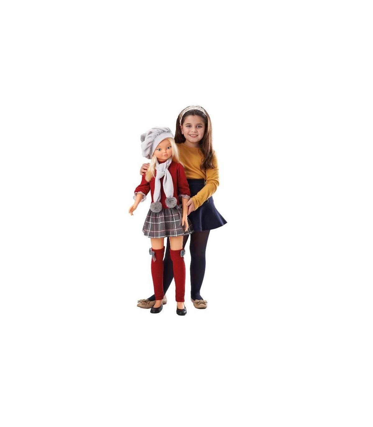 Muñeca Rosaura habladora 20 frases. Saca a pasear a Rosaura con su gorra estilo francés y bufanda a juego, su jersey granate y su falda plisada a cuadros con lazo y sus fantásticas medias a conjunto. Su estilo te enamorará. Escucha lo que tiene que decirte, más de 20 frases. Peina su larga melena y diviértete con tu nueva amiga de juegos