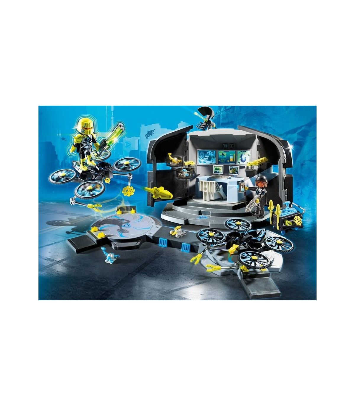 Con doble plataforma de aterrizaje para los dos drones. Dimensiones aprox. 27x20x16 cm (LxPxA). Los drones disponen de brazos móviles y con herramientas intercambiables. Además, disparan. El centro de mando se abre y cierra e incluye dos figuras.