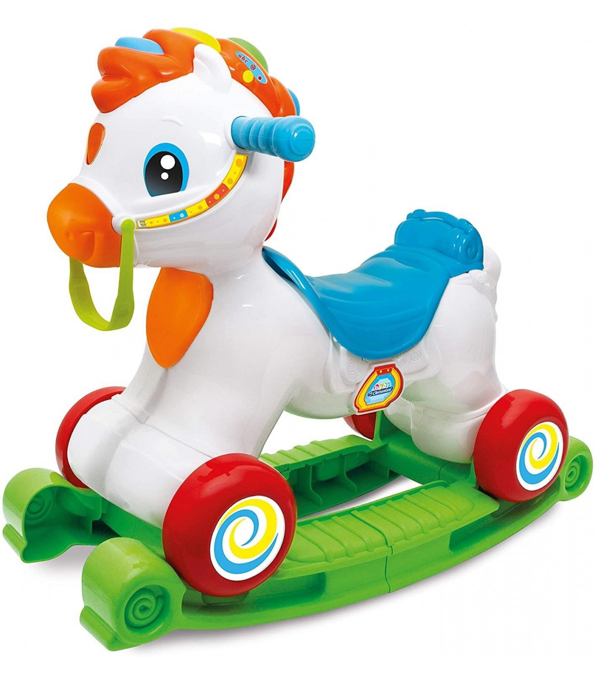 Si vuestro niño o niña acaricia su hocico, se iluminará la mancha y el caballito interactuará con ellos. En su melena tiene teclas para que puedan aprender los nombres de los animales, los sonidos que estos hacen y las letras. Mientras tanto, el rodillo giratorio que incorpora les permite aprender los números.