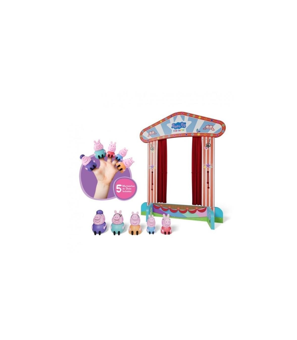 A la hora de elegir un juguete, los niños lo tienen claro… Peppa Pig está entre los preferidos. Y es que esta simpática cerdita llena de vitalidad y energía les encanta. Con ella, con su familia y amigos aprenden valores tan importantes como la comprensión, solidaridad y el afecto. Con el teatro de madera con marionetas de dedo la diversión está asegurada. Se trata de un teatro de sobremesa de 45x45cm. Incluye todos los personajes de la familia para maximizar el juego: Peppa, George, Mama pig, Papa Pig y Abuelo Pig. Recomendado para mayores de 2 años.