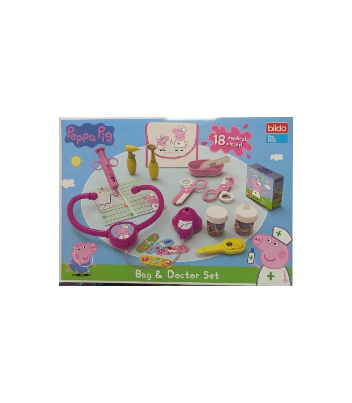 ¡Siéntete como un verdadero doctor/a con éste fantástico Peppa Pig Set Herramientas Doctor!. Cura a tus pacientes con las herramientas de doctor. Escucha la respiración o los latidos del corazón de los pacientes con el estetoscopio o incluso tomarles la temperatura con el termómetro. El Peppa Pig Set Herramientas Doctor viene con un práctico bolso para guardar todas tus herramientas y llevarlas en cualquier lado. No recomendable para menores de 3 años, ya que contiene piezas pequeñas que podrían provocar asfixia en caso de ser ingeridas por el niño/a.