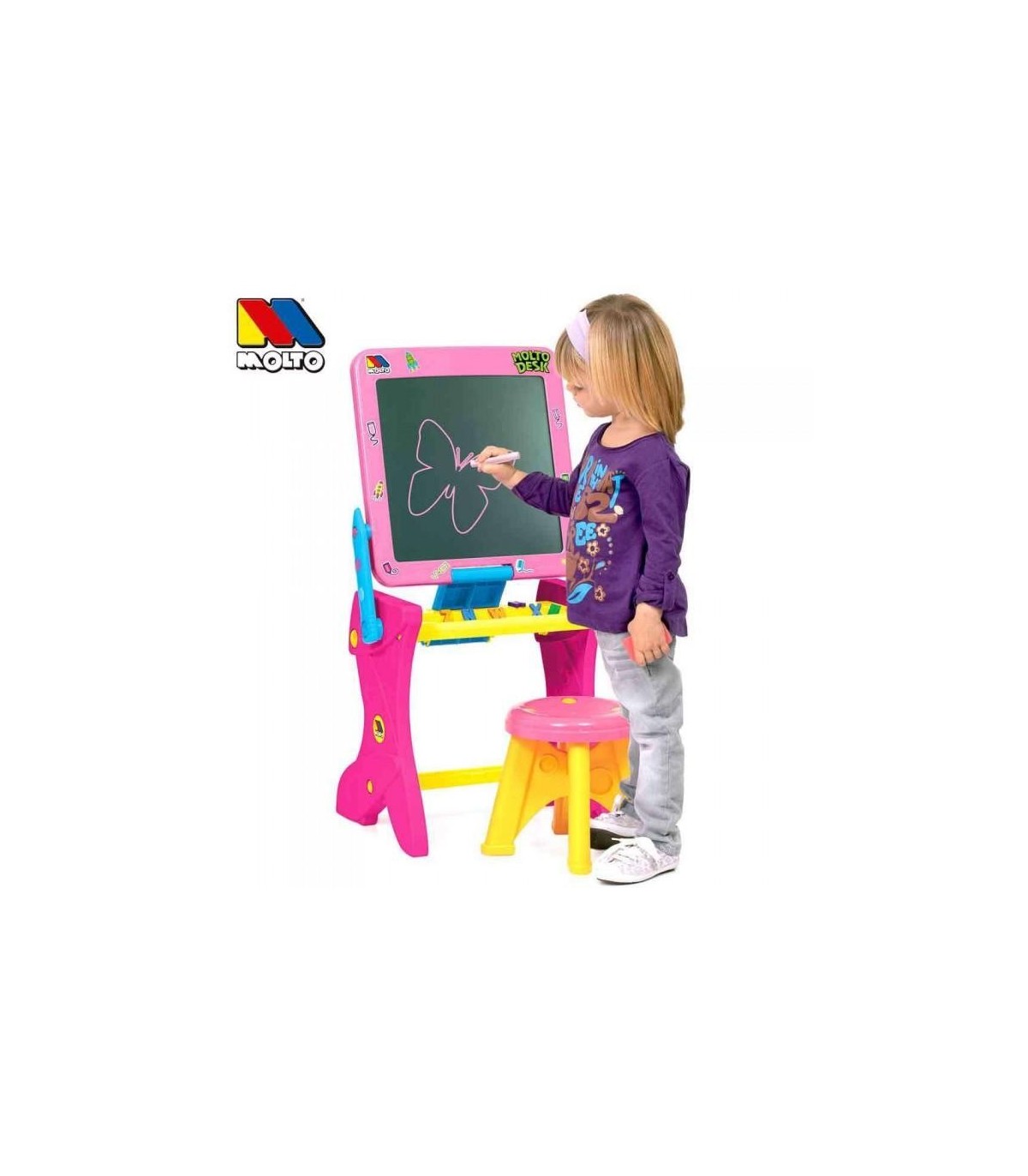 Pupitre infantil de MOLTO con pizarra incorporada para dibujar y pintar sin parar. Tus peques aprenderán, crearán e imaginarán sin límites. Este pupitre incluye una gran superficie de trabajo para que la imaginación de tus peques no tenga límites. Ha llegado la hora de estudiar y aprender.