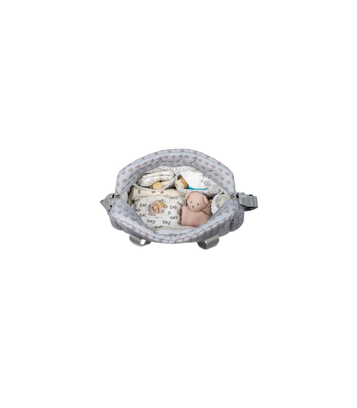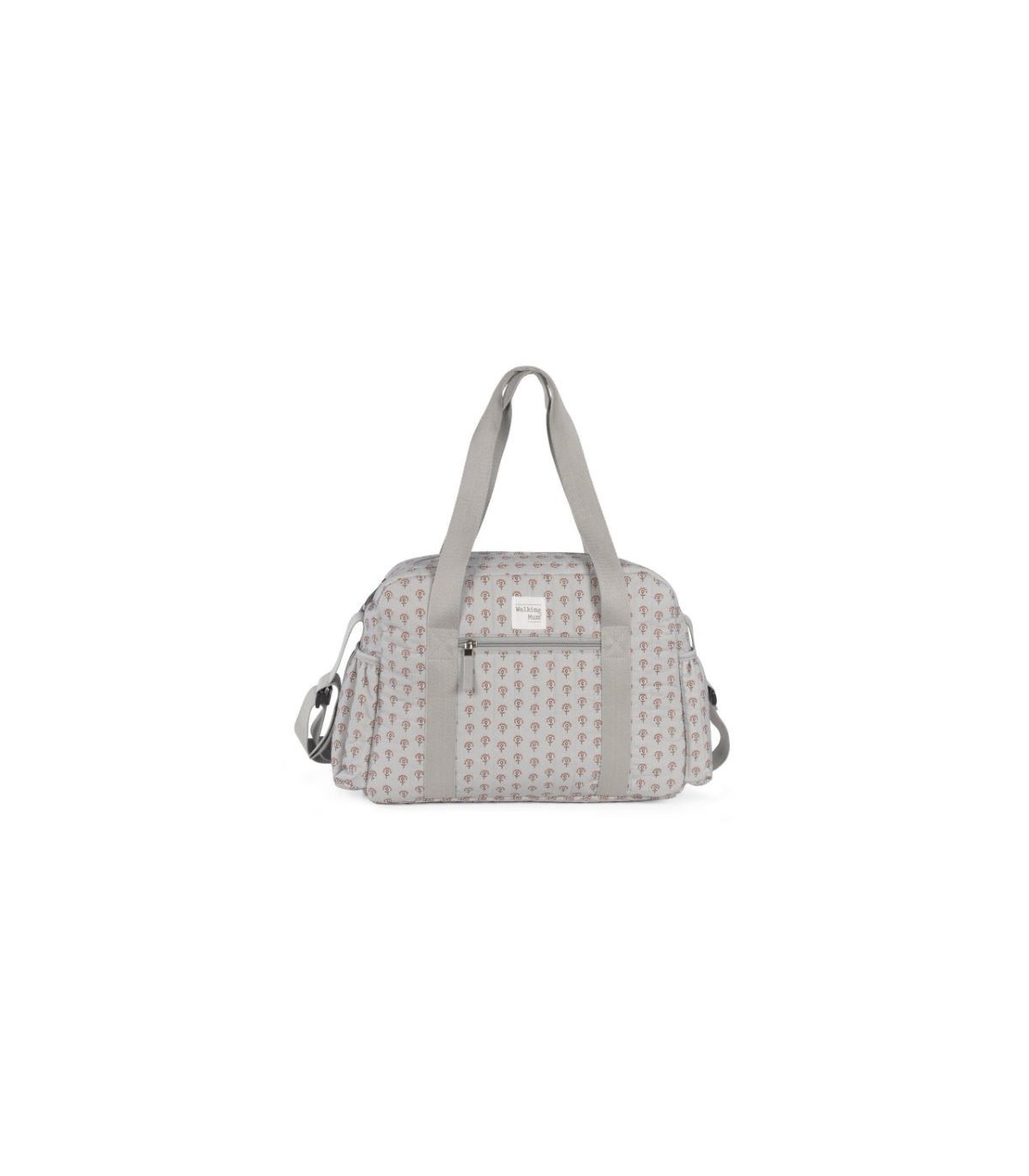 Bolso cambiador Indian Lotus con estampado de flores en tono gris para silla de paseo que incluye cambiador para bebe. Bolsa canastilla muy ligera, resistente y de gran capacidad para llevar todo lo necesario para el paseo del bebe. Tiene multiples bolsillos para poder tener todo ordenado. Dispone en el exterior de dos bolsillos laterales para botellas o biberones y un bolsillo con cremallera frontal. En el interior incopora un bolsillo plastificado para la ropa húmeda, un bolsillo térmico para biberones y dos bolsillos para lo que necesites tener más a mano. La bolsa tiene un sistema universal de fijación, con 2 asas cortas ajustables que facilita la colocación en cualquier modelo de silla de paseo. También incorpora una asa larga para poder colgarla en el hombro y asas cortas para cogerla con la mano. Gran calidad y mucho estilo. Fabricada en un material resistente y de fácil limpieza. Walking Mum protege a tu bebé utilizando los mejores tejidos, libres de colorantes azoicos y sustancias nocivas para la salud. Nuestra colección Walking Mum está diseñada con un particular sello de estilo urbano y moderno que no pasa desapercibido, para vestir diferente los paseos con tu bebé. Las bolsas de maternidad de esta línea son más sport y prácticas, especialmente pensadas en mamás y papás modernos que aprecian los diseños más actuales y en tendencia sin dejar de lado la calidad y la funcionalidad de los accesorios que complementan y hacen más cómodos todos los paseos con sus bebés. Especificaciones: Materiales: 100% algodón con tratamiento waterpfoof. Medidas: 52X31X13 cm.