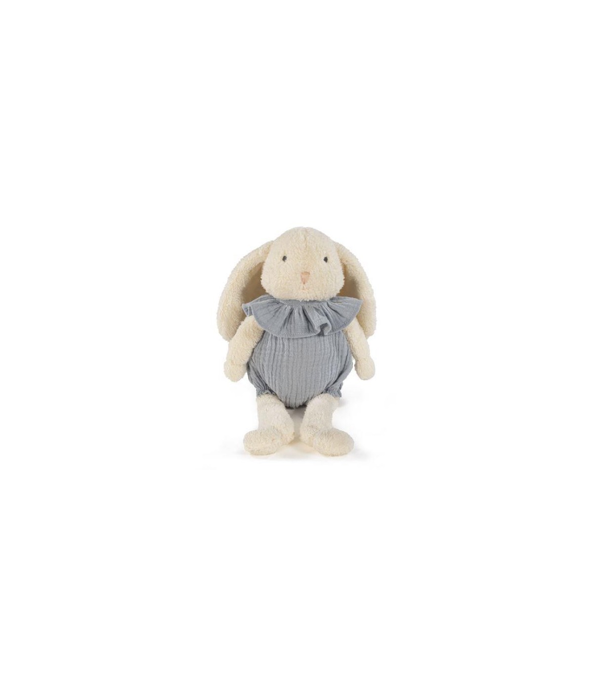 Conejo de peluche con vestido color cloud para el bebé. Muy suave y con una textura muy agradable. Sus ojos son bordados garantizándo la seguridad de tu bebé. Fabricado bajo normativa de seguridad en juguetes EN-71. Medidas: 34 cm. Lavar a maquina máx. 30°C. No usar lejía. No planchar. No limpiar en seco. No se puede usar secadora.