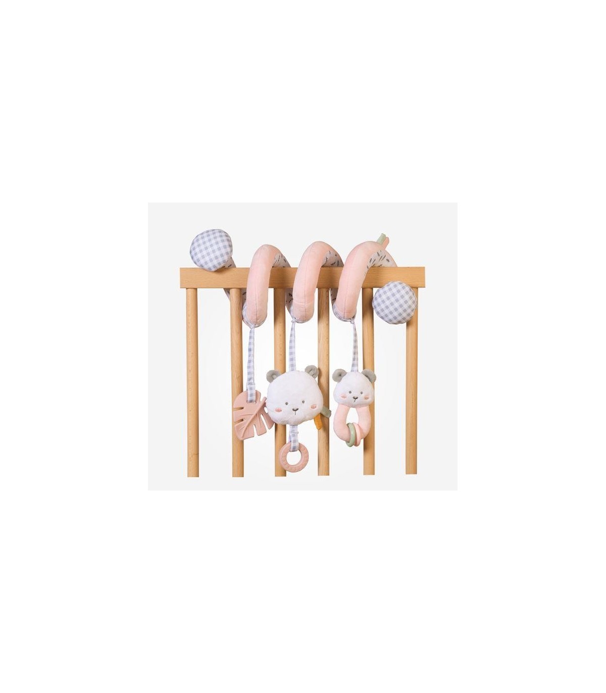 Gracias a su forma, colores y actividades, esta espiral favorece el desarrollo de la coordinación infantil. Este juguete estimula la psicomotricidad del bebé ya que ayuda a coordinar los reflejos auditivos, visuales y a consolidar el sentido del ritmo, fundamental para el desarrollo del lenguaje. Diferentes actividades que favorecen el desarrollo sensorial y la motricidad fina. Espejo. Sonajeros. Taggies. Mordedor de silicona premium. Especialmente diseñado para para sus pequeñas manitas.