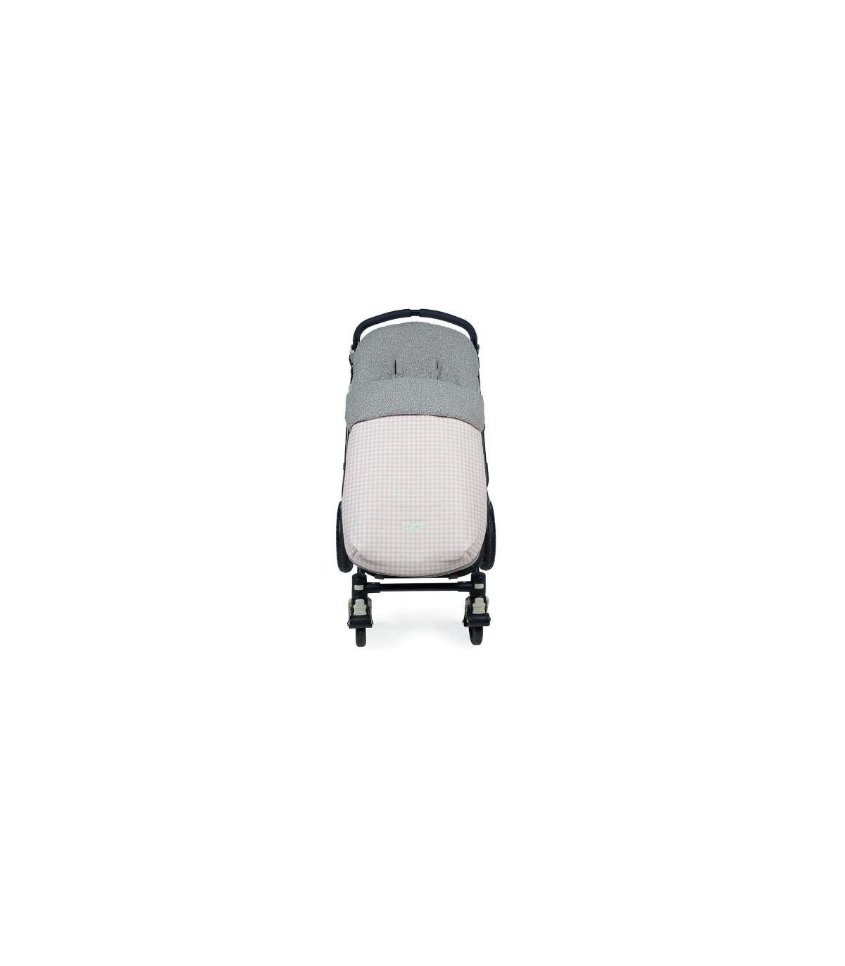 Funda Together en polipiel estampada en cuadro vichy rosa de Pasito a Pasito ideal para cubrir la silla de paseo provista de saco. Interior en borreguito gris para mantener a tu bebe calentito durante el paseo. Reposapiés en polipiel para su fácil lavado. Dispone de varias aperturas (ojales) y ajustes para adaptarla a la mayoría de la sillitas de paseo