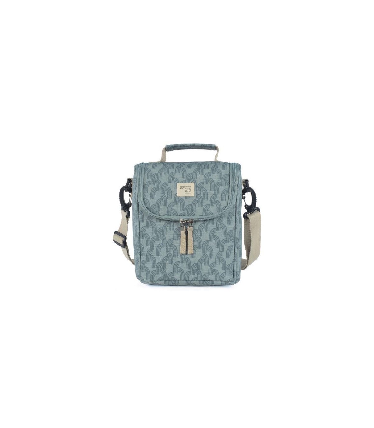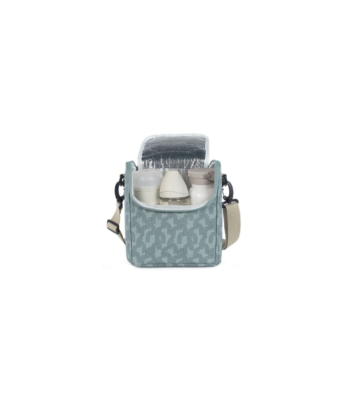 Bolsa térmica para biberones Tulum con estampado geométrico verde. Mantiene la temperatura durante 4 horas. Medidas: 20X26X12 cm.