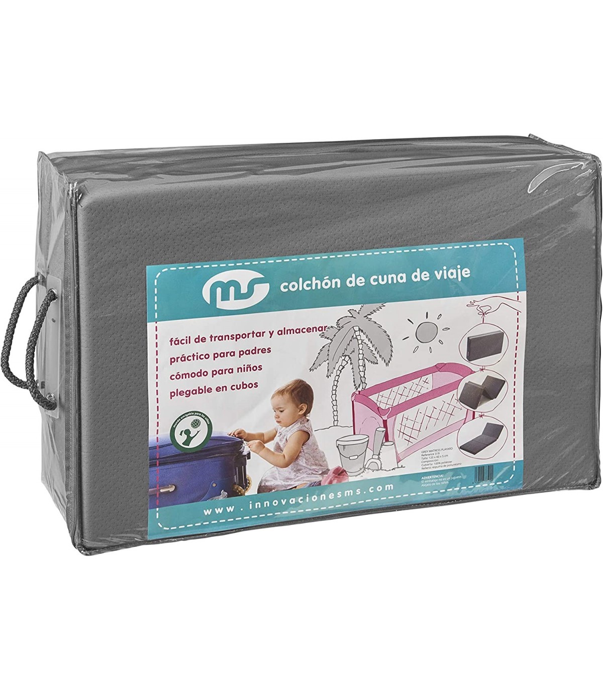 MS COLCHON CUNA VIAJE GRIS