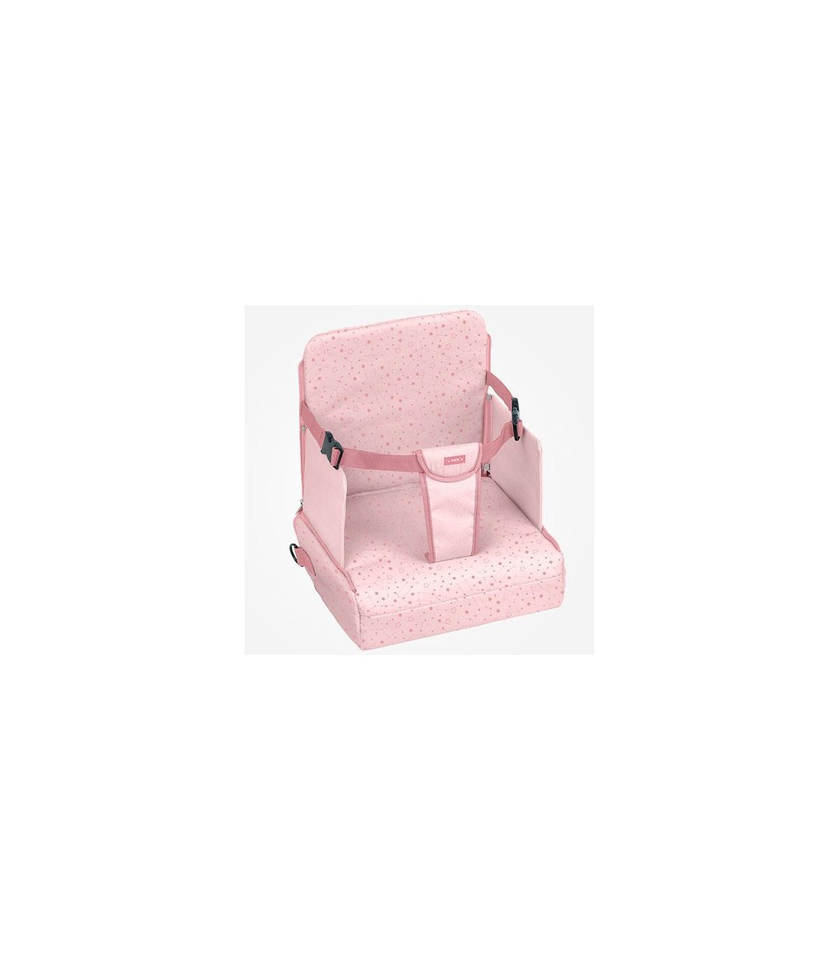 Práctica silla elevadora de material blandito, muy cómoda para el bebé. Provista de dos cinturones ajustables para fijar al respaldo y al asiento de la silla; y de un arnés para fijar al niño con la mayor seguridad. Se coloca fácilmente y de forma segura en cualquier silla normal. De una manera muy sencilla se transforma en un bolso para guardar las cosas de tu hijo cuando sales fuera de casa: juguetes, pañales, …