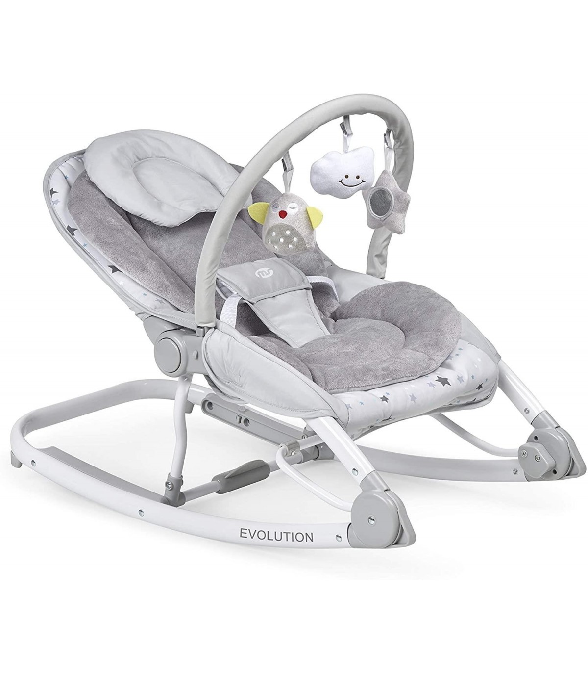 REGULABLE - La hamaca Evolution es regulable en respaldo y en altura. Tiene dos alturas diferenciadas y 3 posiciones de respaldo para fijar la posición deseada. BARRA DE JUEGOS - La barra de juegos cuenta con 3 divertidos muñecos. Esta misma barra es extraíble. PLEGADO ULTRA COMPACTO - Se pliega totalmente para poderse guardar en cualquier rincón sin ocupar casi espacio. 2 POSICIONES - La hamaca cuenta con dos posiciones: fija y balanceo. Puede fijar la hamaca para que se quede fija o , por el contrario, para que se balacee y entretenga al bebé.