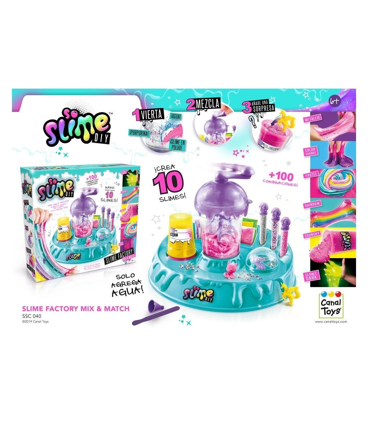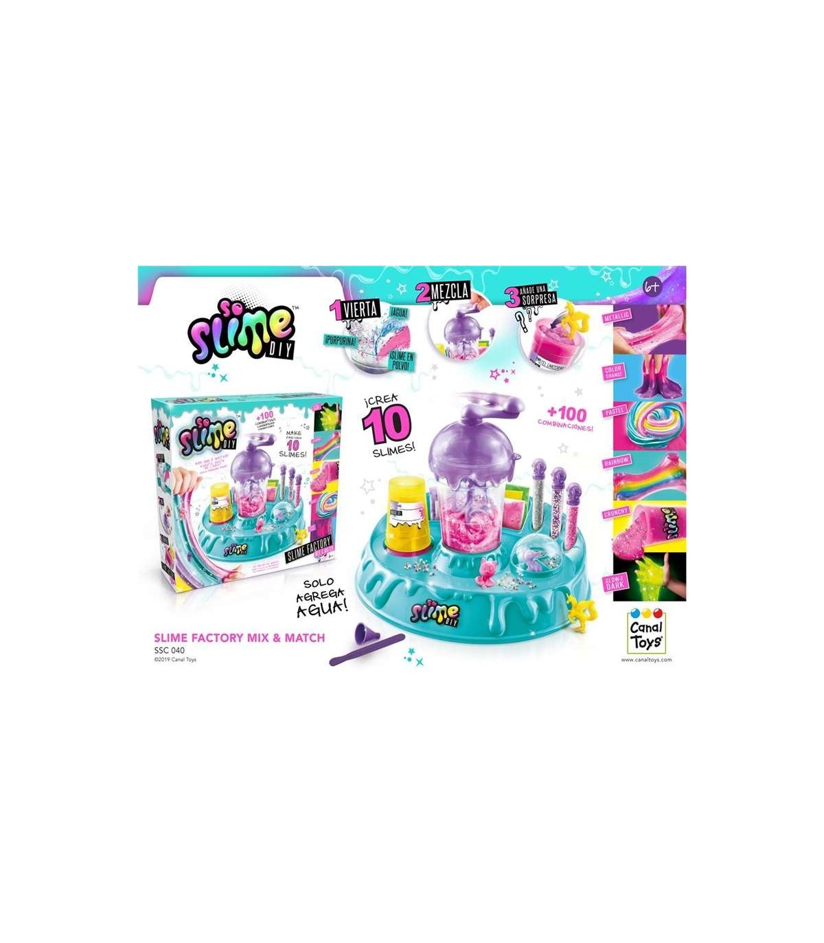 El SLIME FACTORY MIX&MATCH pertenece a los juguetes creativos y de destreza manual más notables para un niño o niña. Es una fábrica de slime o masa gomosa, que se usa a diario en los tiempos libres de los colegios y en casa. Consiste en mezclar con agua diferentes polvos y obtener de ahí la creación de tu masa viscosa. Puedes crear hasta 10 slimes y hacerle muchas combinaciones ¡hasta 100 combinaciones posibles!.